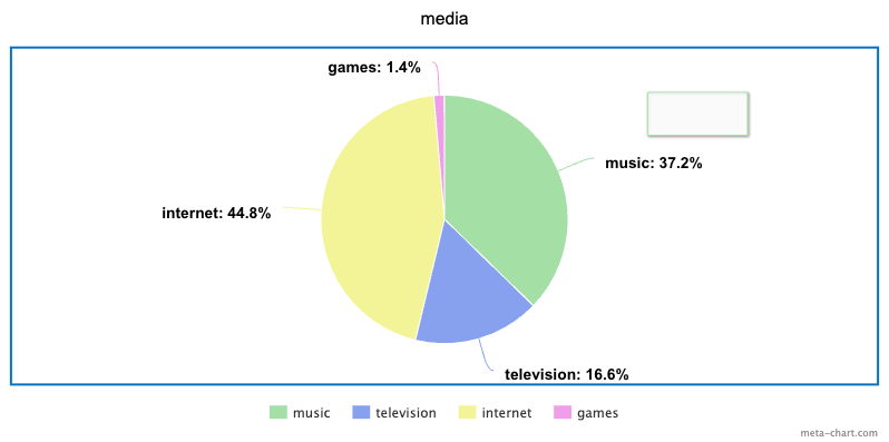 The larger percentages on the Media Pie Chart are the medias I use more.